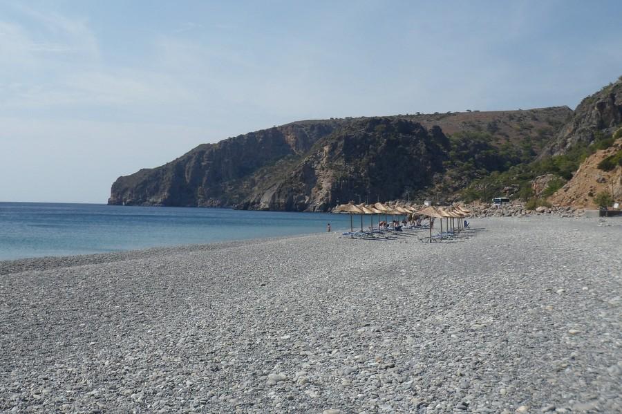 Sougia is a small, cozy, picturesque village on the southwest side of Crete. It has about 150 inhabitants and several tavernas on the boulevard next to the large pebble beach. Sougia has a few cafes and bars, but do not expect a lot of nightlife (if any). It is ideal for those seeking peace and those who still want to enjoy the real Greece. There are many hiking trails in the area and it is close to the famous Samaria Gorge (the longest gorge in Europe). Learn more about Sougia.