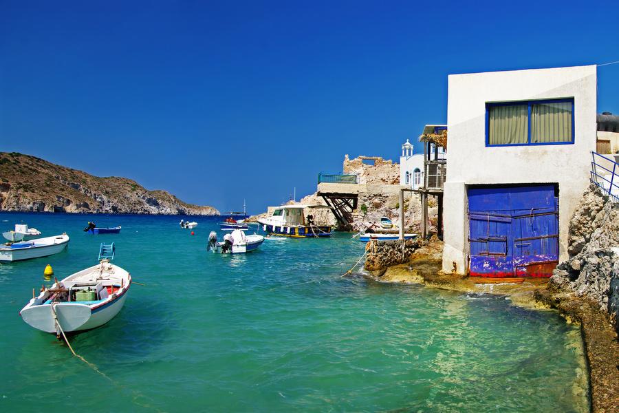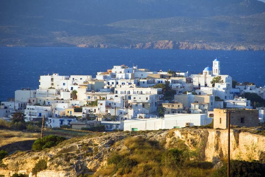 Klima is known for the houses that are literally located on the waterfront where waves crash against them.