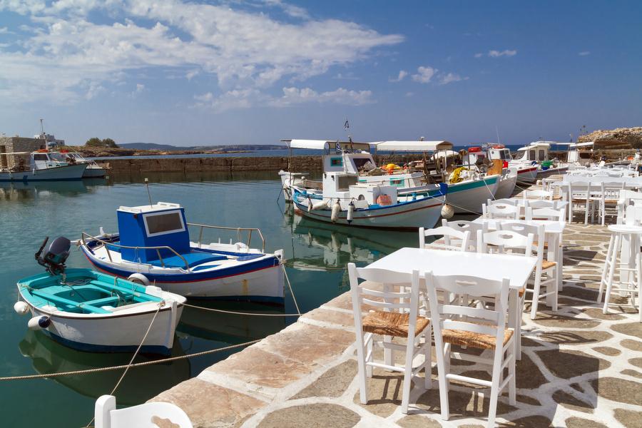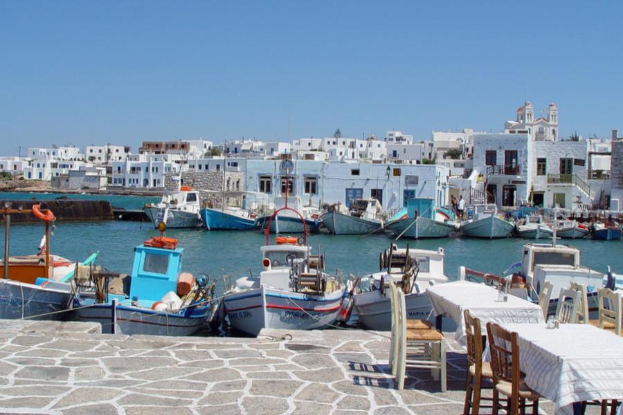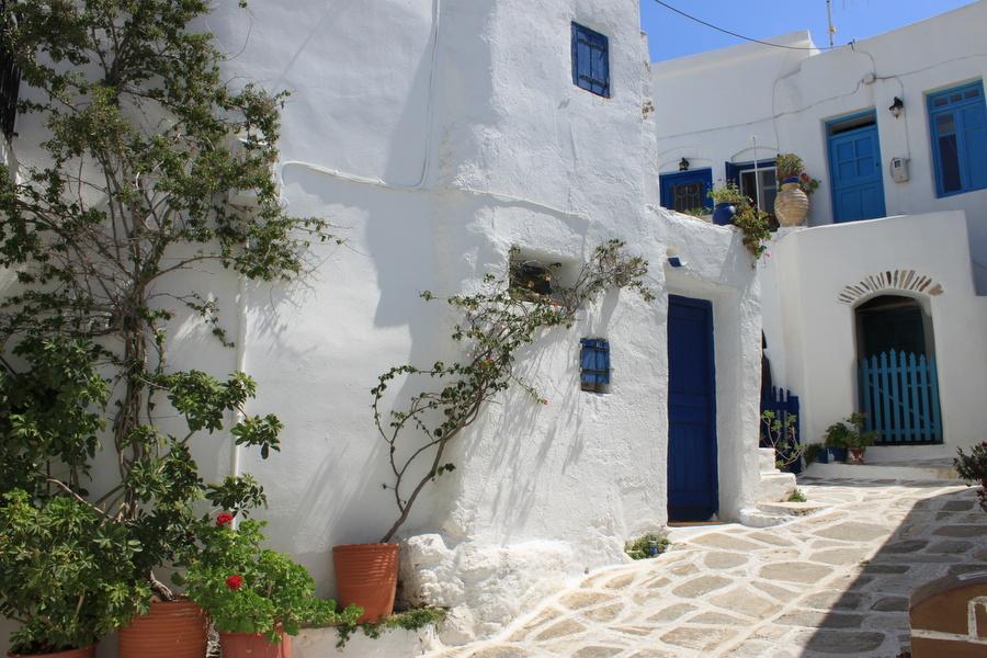 Parikia , the port town of Paros, has a nice center with small white streets where one finds shops and cafes.