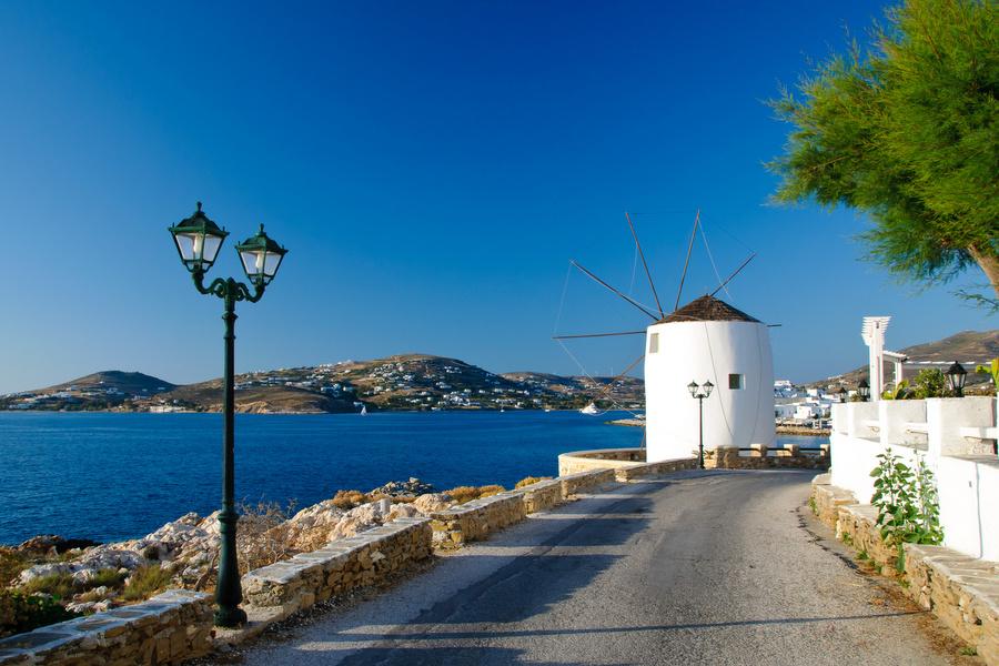 The island has beautiful sandy beaches and peaceful white villages. The main town of the island, Parikia, is a long drawn out village which mainly runs along the coast. The center consists of a number of whitewashed alleys, typical for the Cyclades, with occasionally a square with tavernas.