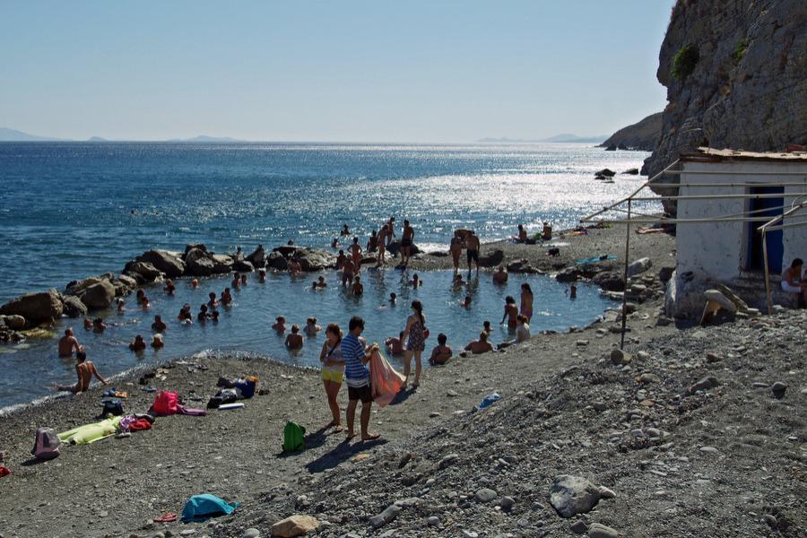 Embros Therme is a thermal source and has an unmistakable smell of sulfur. The source is supposed to have medicinal purposes