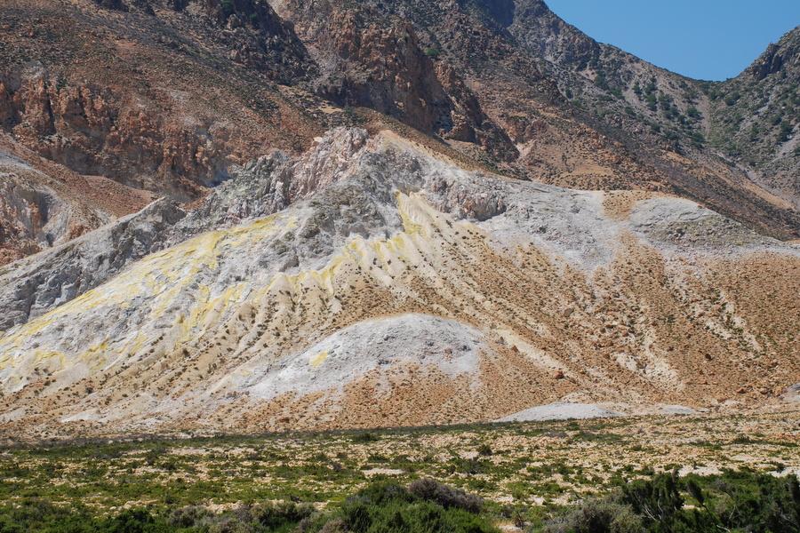 Nisyros is a small, round volcanic island with a surface area of approximately 41 km2. There are more than 1500 permanent residents and most live in the port town of Mandraki. Mandraki is a picturesque village with whitewashed houses and narrow streets. On top of the hill is a small Venetian fort. Compared with, for example Kos and Rhodes, Nisyros is an oasis of tranquility, it only gets busy during the day. There are daily excursions from Kos to Nisyros for the ones willing to visit the crater of the volcano.