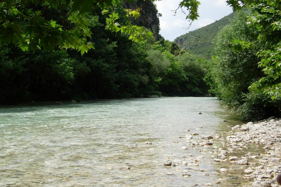 Glyki has a gorge filled with water where you can wade through. It's a bit further away on the mainland.
