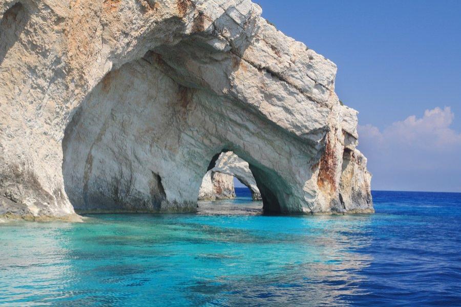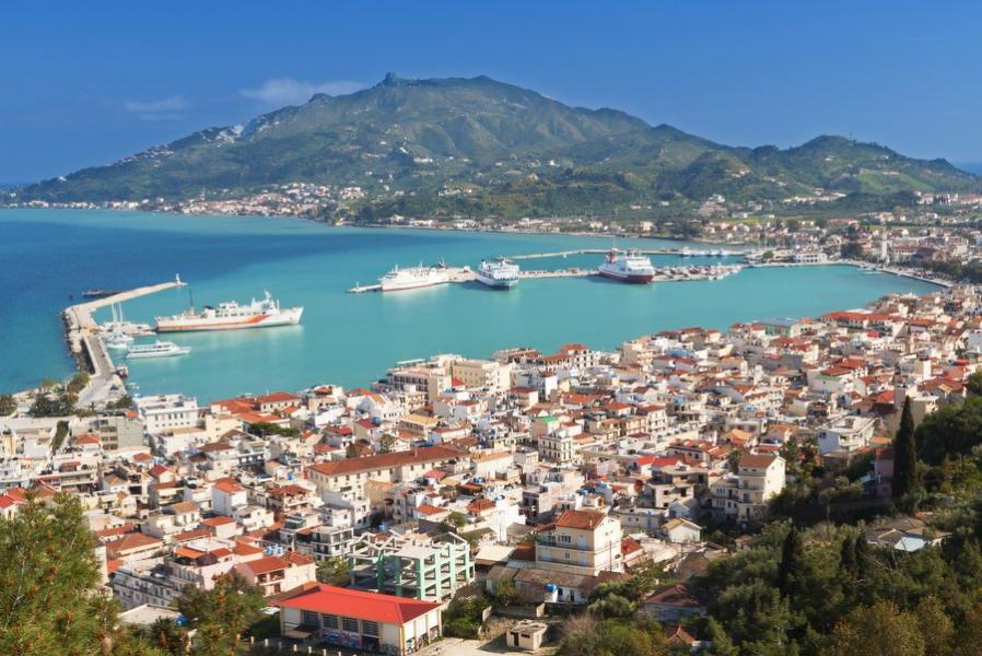 Zakynthos is, with a surface area of 406 km2, the largest island of the Ionian Islands after Corfu and Cephalonia. It lies in the south of the Ionian Sea and is also known as Zante. Zakynthos is known for its rugged coast, high cliffs with in between unreachable, deserted beaches. One of these beaches is the famous 'Shipwreck Beach'. This is the place where most pictures of Zakynthos are taken. The west side of the island consists of chalky rock. By the erosion of the water caves and large underground holes are formed here.