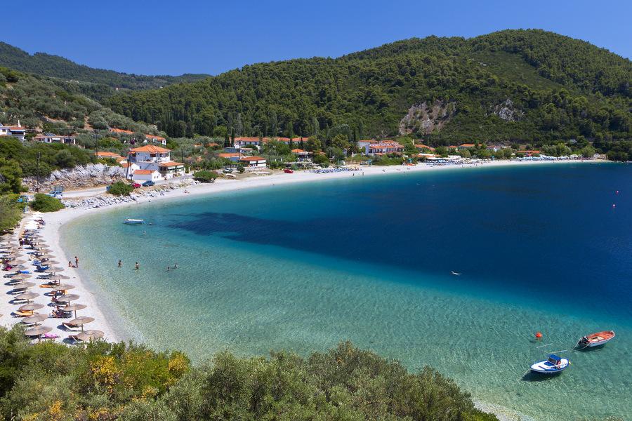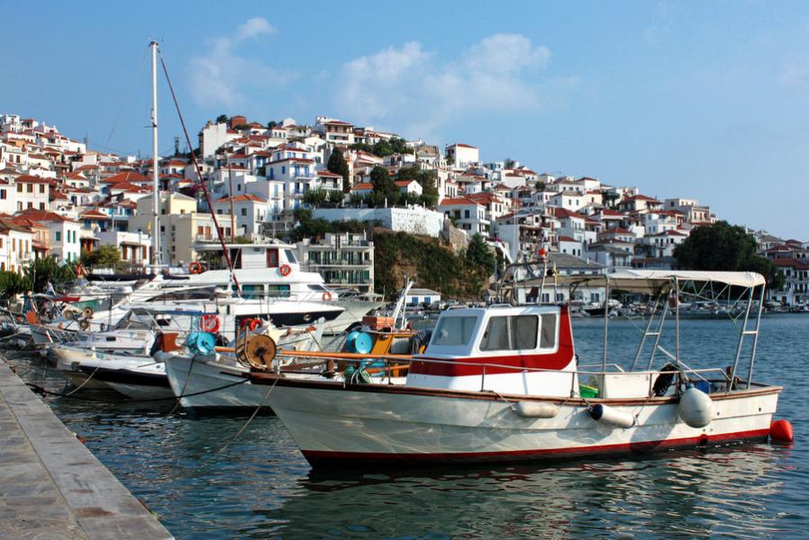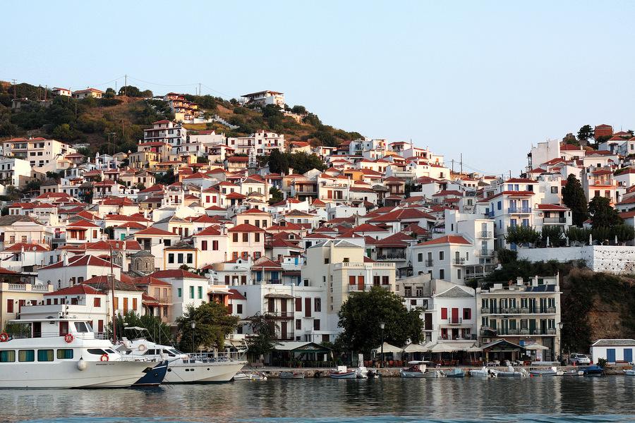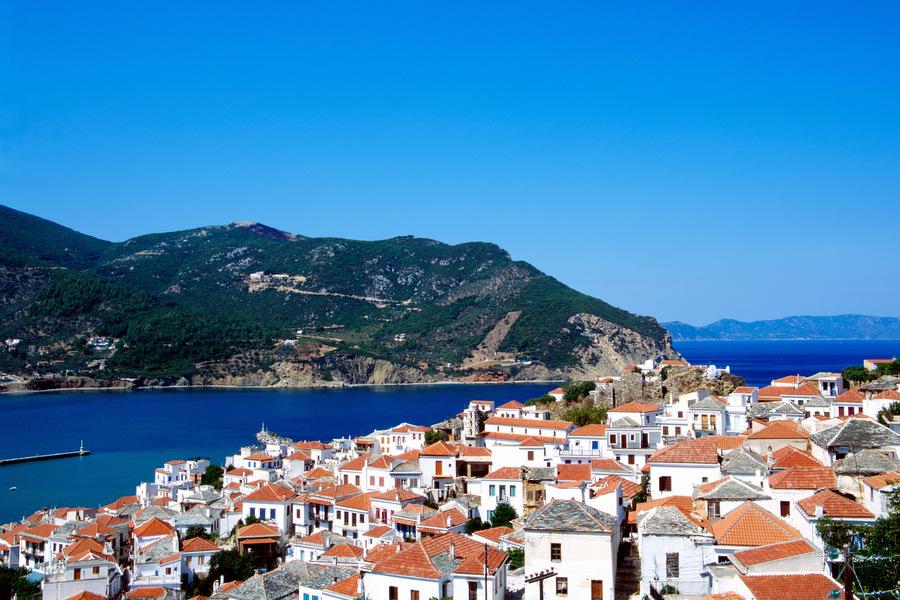 Skopelos Town consists of traditional white houses with orange roofs that are built up against a mountain. The center is very charming and lively. Everywhere there are little old churches and you will find cozy squares. It's easy to get lost while scrambling up the hill through the narrow streets. The reward is a magnificent view over the bay. From the city there are caiques to the beautiful, but difficult to reach, beach of Glisteri.