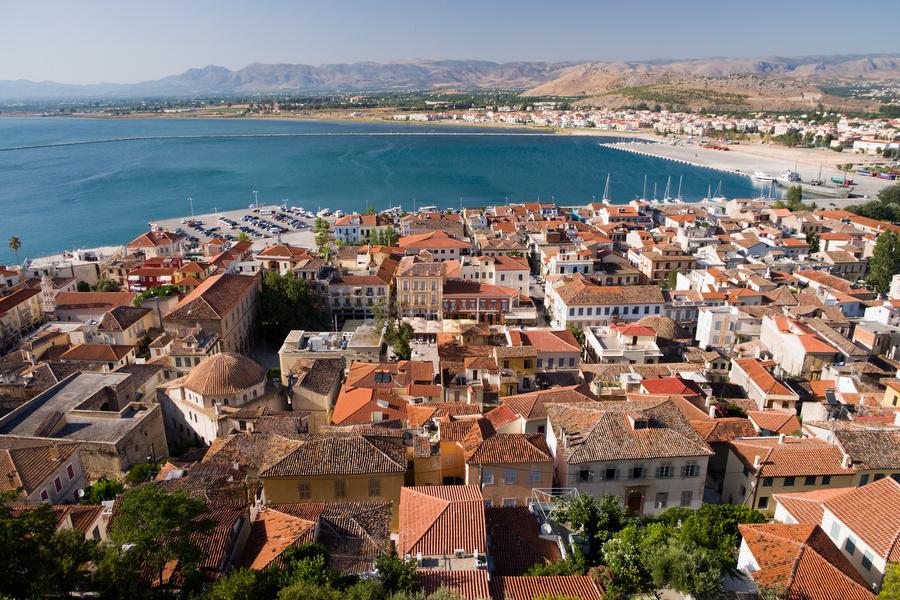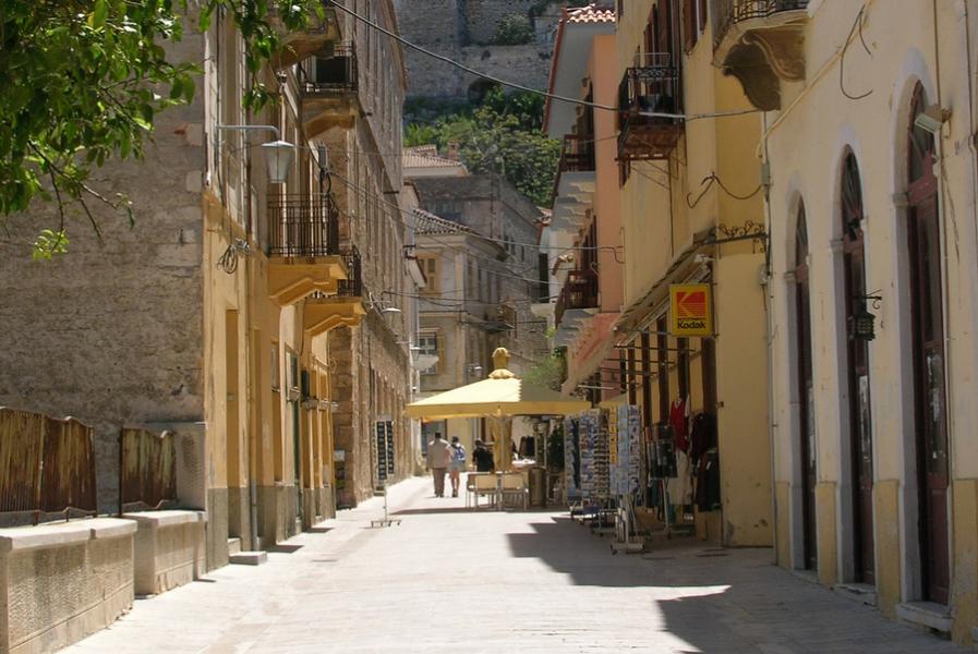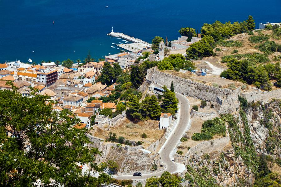 Nafplion is a charming harbor town with narrow streets connected by stairs around the Platía Syntagmatos square,. This beautiful cobblestone square has cafes and tavernas for a snack and drink. The marble streets make Nafplion the most elegant city in Greece. Above Nafplion the Palamidi castle dominates the hill, after a climb of 857 steps you arrive and have a magnificent view.